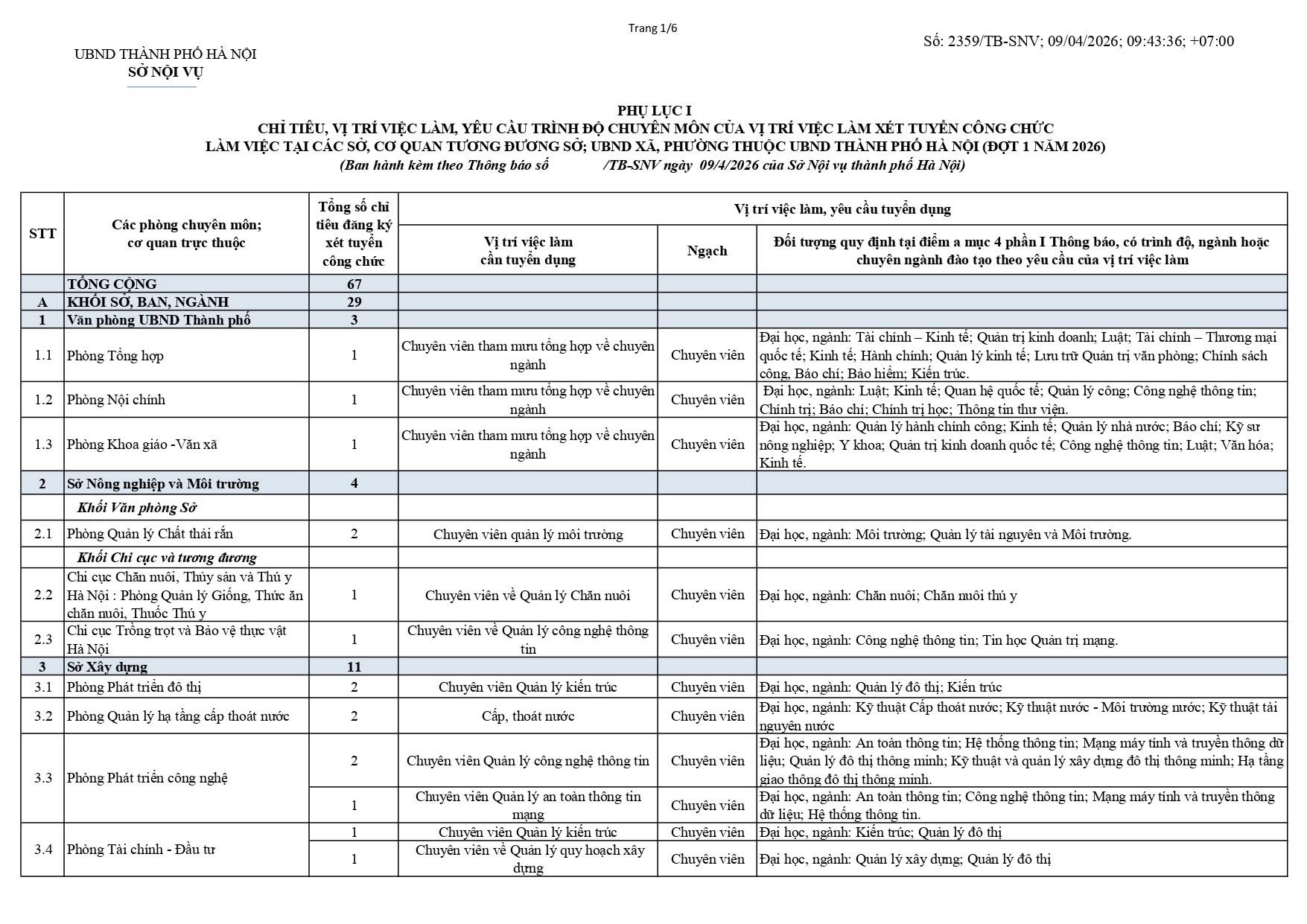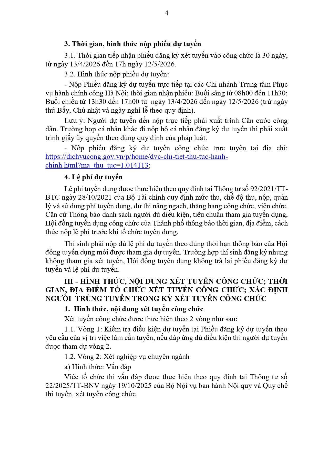 THÔNG BÁO Về việc xét tuyển vào công chức làm việc tại các sở, cơ quan tương đương sở và UBND xã, phường thuộc UBND thành phố Hà Nội (đợt 1 năm 2026)